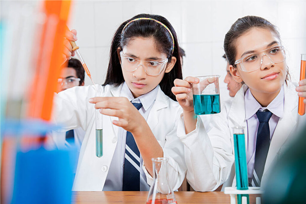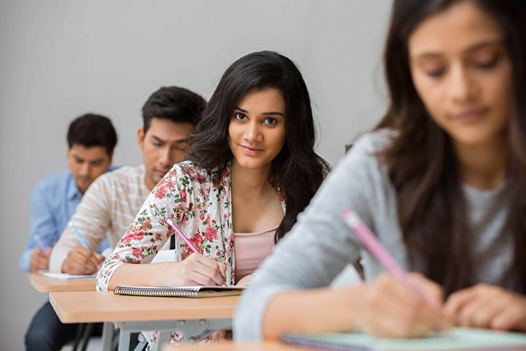 Girl students studying in Class 9